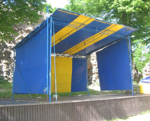 Katuse kõrgus lava põrandast: ees 3,8 m, taga 2,8 m.