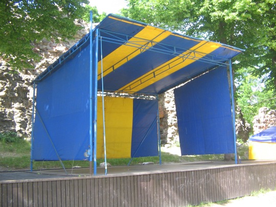 Lavaga on vajadusel kaasas 2 võimendusaparatuuri alust 2 x 2 m ja helitehniku majake 4 x 2 m või 2 x 2 m koos katusega ning käsipuudega trepp laiusega 1 m.