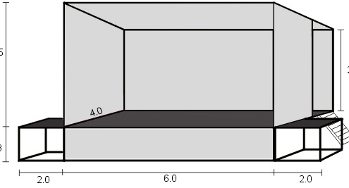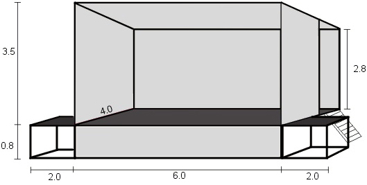 Laius 6 m, sügavus 4 m, põranda kõrgus maapinnast 0,9 m või 1,4 m.