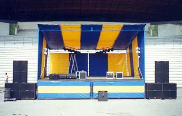 Lavaga on vajadusel kaasas 2 võimendusaparatuuri alust 2 x 2 m ja helitehniku majake 4 x 2 m koos katusega ning käsipuudega trepp laiusega 1 m.