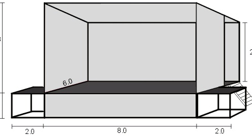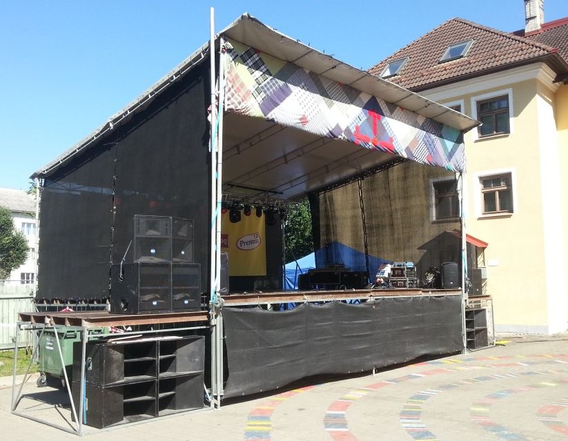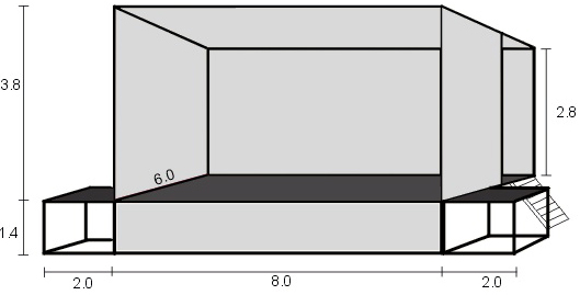 Katuse kõrgus lava põrandast: ees 3,8 m, taga 2,8 m.