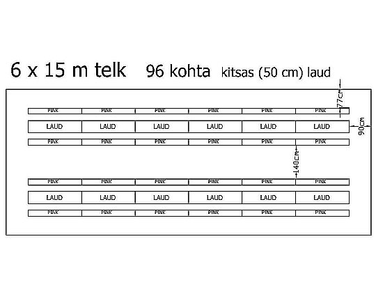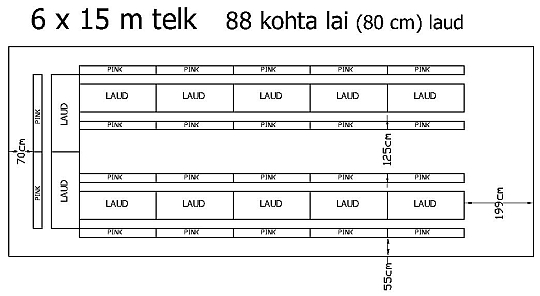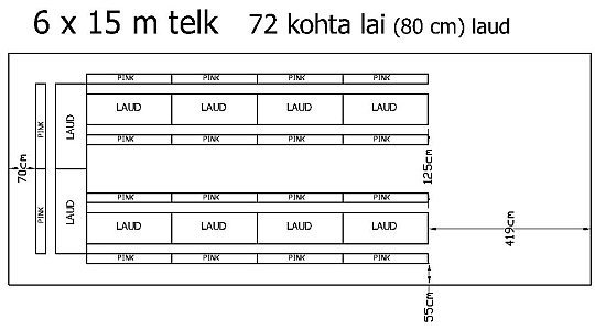 Seinte karkass ruuttorust (30x30x2), laekarkass nelikanttorust (30x30x2), karkass on tsingitud; ühendatakse liitmike abil ja kinnitatakse maapinda läbi taldade või vaiadega maa sisse. Kaetud PVC-tüüpi materjaliga, katus ja seinad on valged. 6 m laiused seinakatted on ühekaupa eemaldatavad.